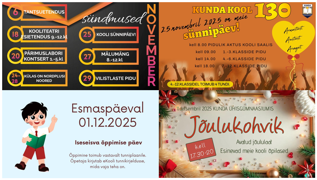 Novembri lõpus tähistame järjekordset aastaringi Kunda hariduselus. 29. novembril toimub selle sündmuse auks pidulik õhtu Kunda koolis. Kui Sinul/sõpruskonnal/klassil...