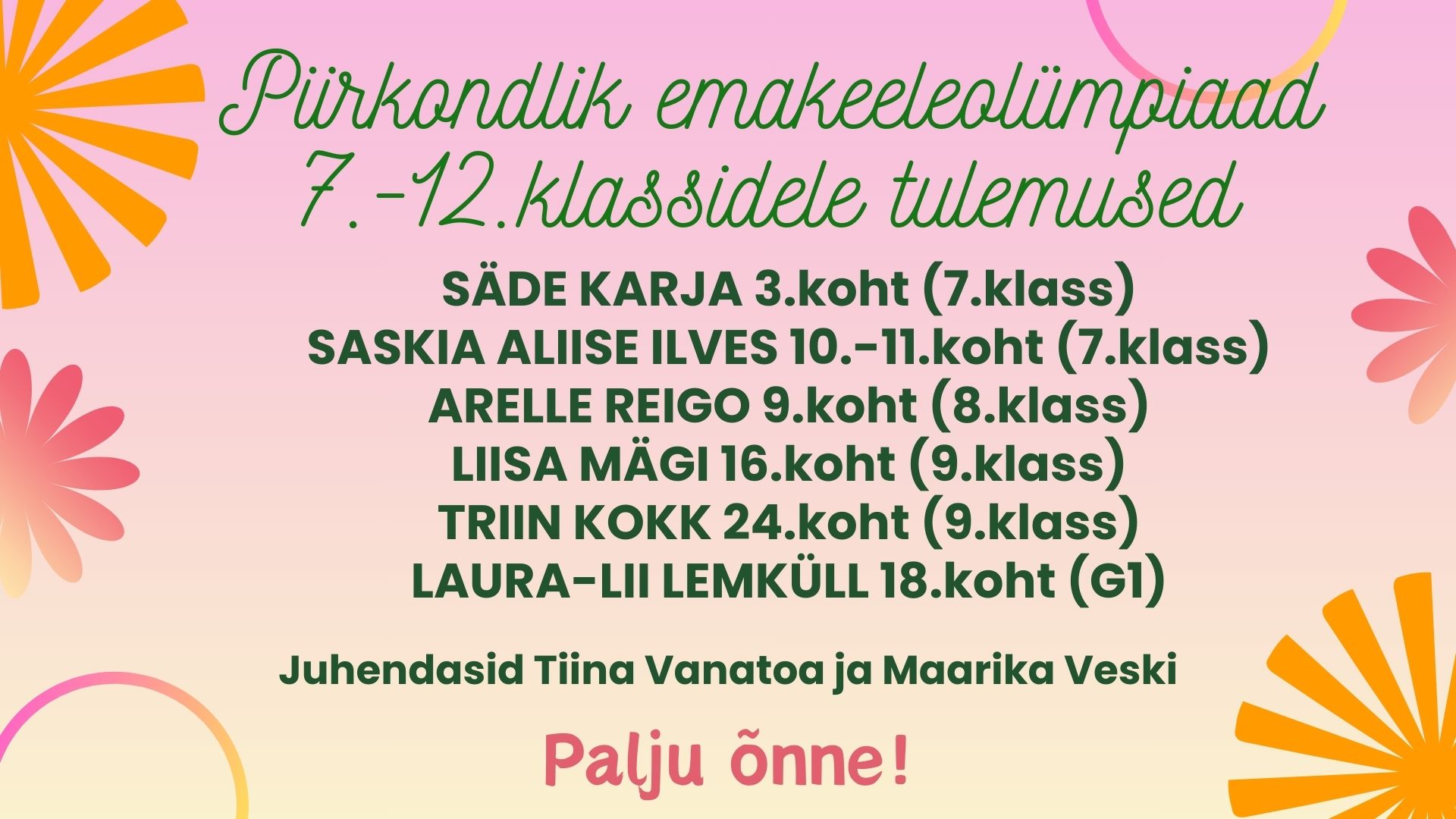 Palju õnne osalejatele ja juhendajatele