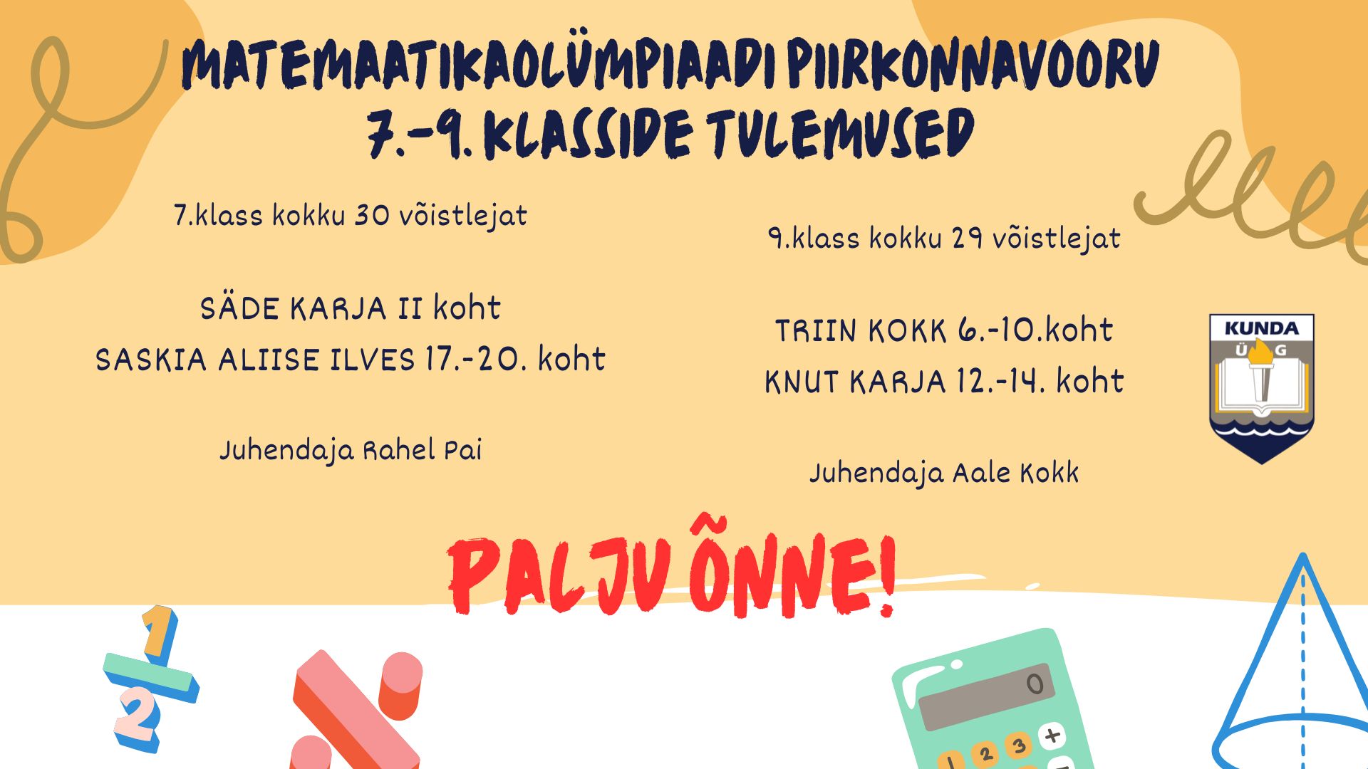 Kunda Ühisgümnaasiumist osalenute tulemused:
