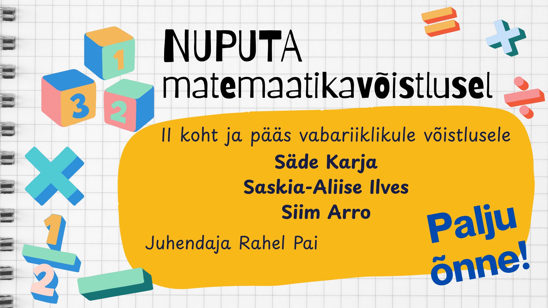 7. klass saavutas maakonnas II koha ja pääses edasi vabariiklikule NUPUTA võistlusele.